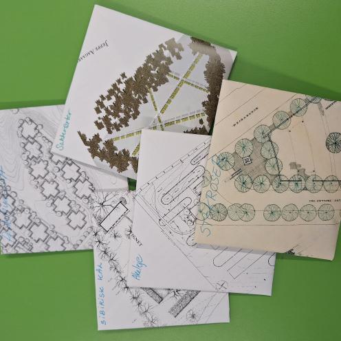Frøene står klar i frøposer foldet af kasserede biblioteksbøger, på den måde sikrer vi bæredygtig emballage, der samtidig beskytter frøene på bedste vis.